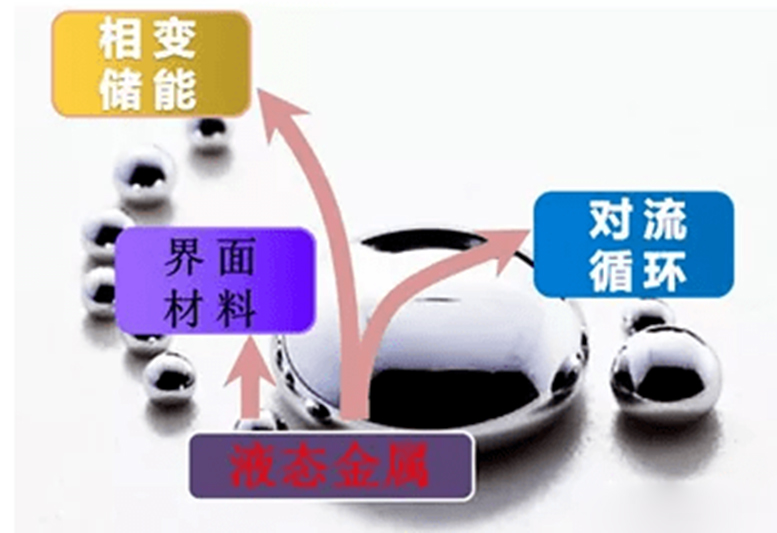 液態金屬也稱塊狀非晶,原子呈無序排列,無晶界,微觀結構均勻,無析出相;而傳統金屬原子呈有序排列,有晶界,有析出相,微觀結構不均勻。材料的性能 大多由內部結構決定。它在常溫常壓下呈液態,由於其不定性的液體形態使得液態金屬具有極佳的電性能、熱力學性能和導熱性能。根據成分配比,液態金屬材料會具備不同的功能屬性,如吞噬效應和自驅動等特殊功能,在電子製造、散熱、空間、生醫等領域有著重要應用前景,是近年來學術界和產業界關注的熱點。其中,液態金屬在熱管理領域的應用主要體現在熱界面材料、對流循環和相變儲能。
