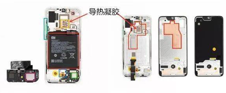 大家應該注意到了其中導熱凝膠高散熱材料,這款散熱材料有點類似於本身電腦CPU上的矽脂,它和矽脂的功能一樣,為了有效將CPU中的熱量有效導出給熱管進行散熱,所以這也是熱界面材料從電腦端轉向移動端使用的案例。
