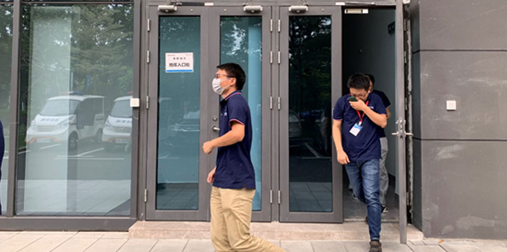 到達一樓指定位置后,各部門人員開始集合報數,確定所有員工到齊。